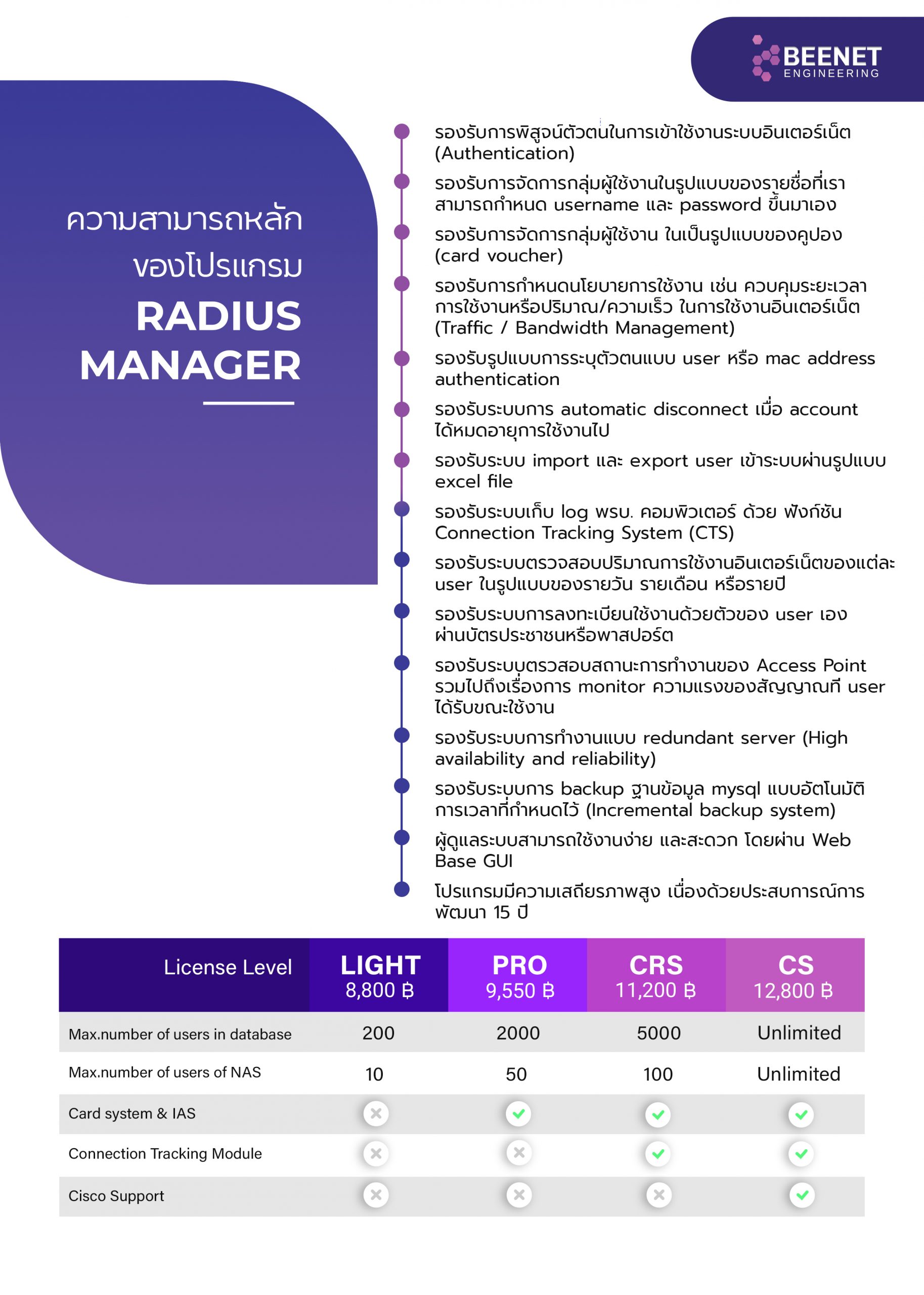 ความสามารถหลักของ โปรแกรม Radius Manager