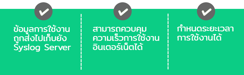 – สามารถควบคุมความเร็วการใช้งานอินเตอร์เน็ต เช่น ใช้ได้ที่ความเร็ว download 5 MB และ Upload 2 MB เป็นต้น