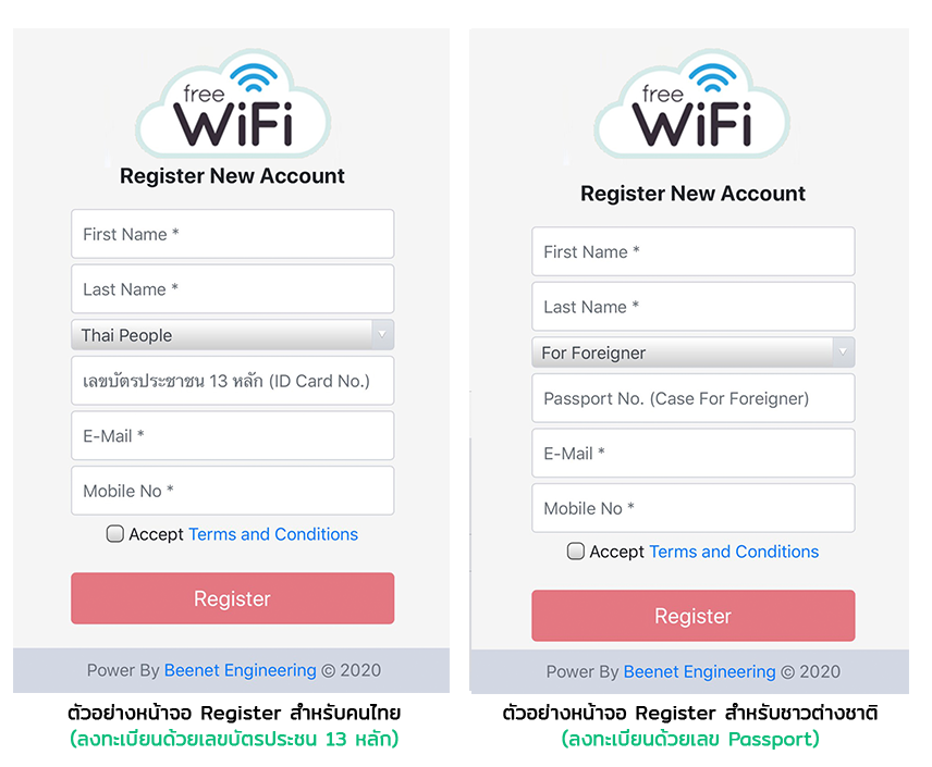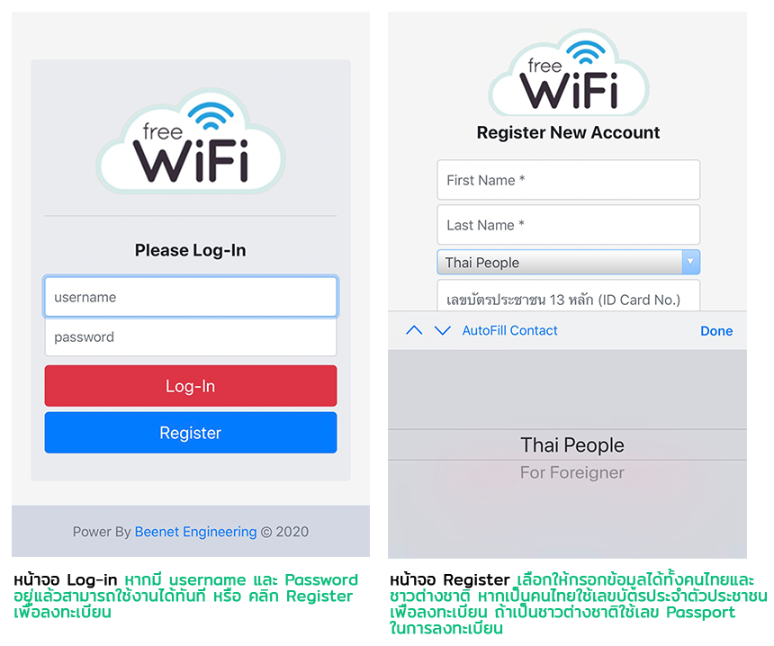 ระบบลงทะเบียนการใช้งาน WiFi ผ่านเลขบัตรประชาชน (self register with ID Card)